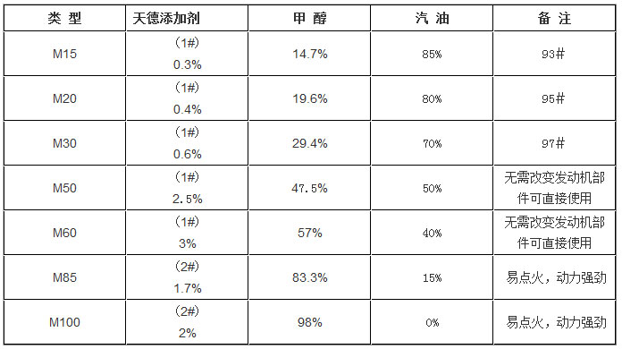 1、調(diào)配所用的甲醇必須嚴(yán)格控制含水量,純度在99.5%以上,天然氣制甲醇優(yōu)先選擇,煤質(zhì)甲醇亦可;汽油以國標(biāo)90#、93#汽油為準(zhǔn)?! ?、添加劑與甲醇混合后的變性甲醇,必須均勻透徹,且清凈分散后方可加入到汽油中。